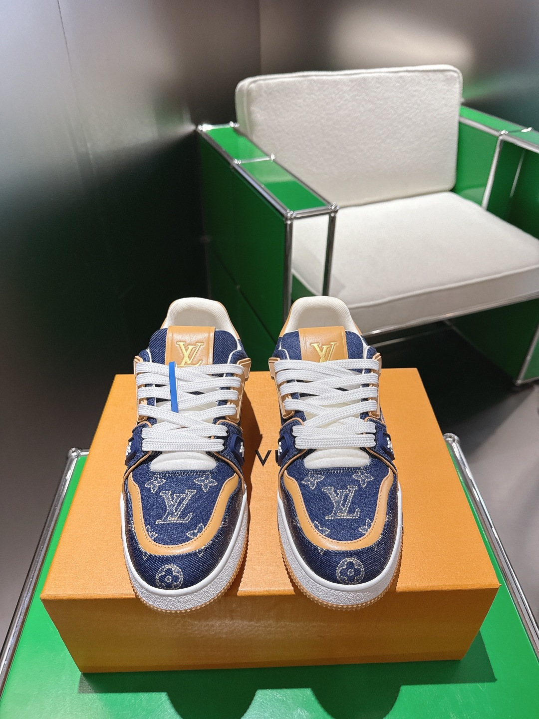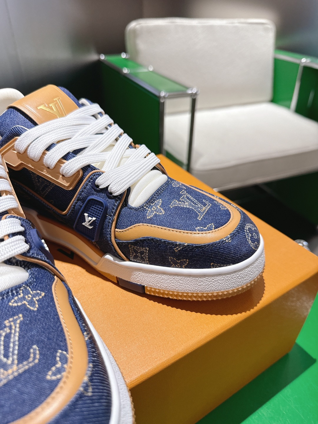 The LV Trainer sneakers are inspired by classic basketball shoes by designer Virgil Abloh. This time, they feature a combination of smooth calfskin and Monogram embossed grain calfskin, accented with Monogram floral details on the rubber outsole, creating a striking contrast within the unified color scheme!